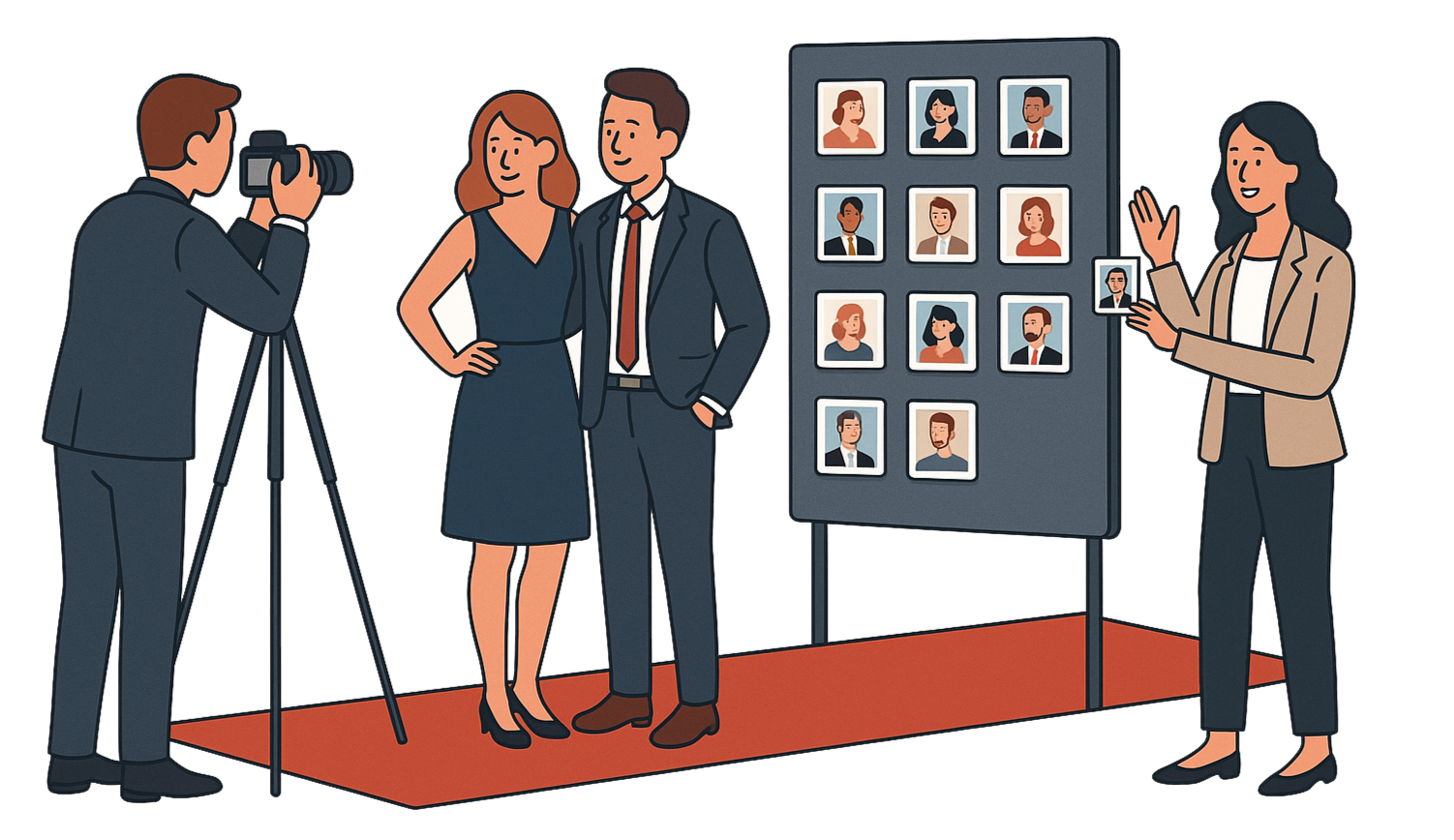 Met Magneetbooth kies je niet voor een standaard photobooth, maar voor iets blijvenders: een professionele portretfoto gedrukt op een stijlvolle magneet die je gasten mee naar huis nemen.Jij en je gasten worden gefotografeerd aan het begin van het event in stijl, alsof het een rode loper is. Tijdens het feest maak ik ter plekke magneten van deze beelden. Aan het einde van de avond liggen ze klaar op een magneetbord bij de uitgang of bij de goodiebags. Het resultaat: een persoonlijke, tastbare herinnering die direct op de koelkast gaat.